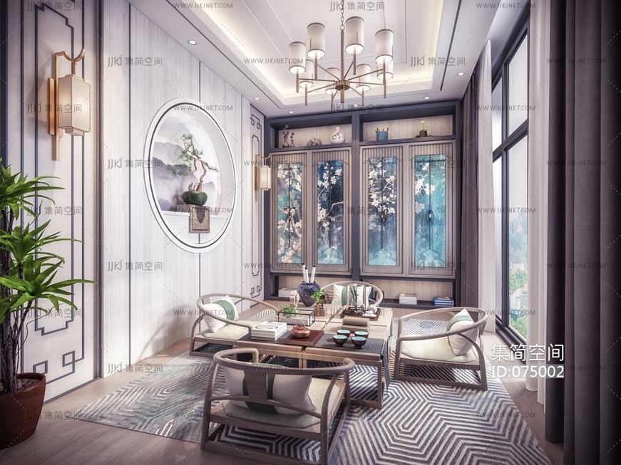 新中式茶室,茶桌椅,炕桌茶具摆件茶几摆件 3d模型下载 [模型ID:75002]