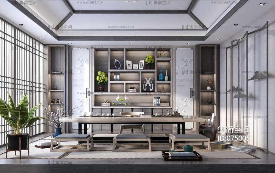 新中式日式榻榻米茶室茶室 3d模型下载 [模型ID:75005]