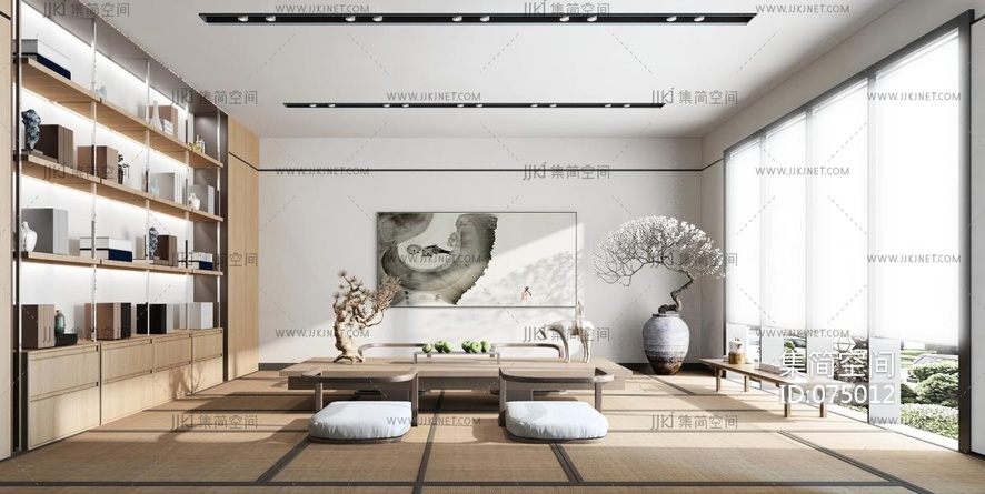 新中式榻榻米休闲茶室茶桌椅 3d模型下载 [模型ID:75012]