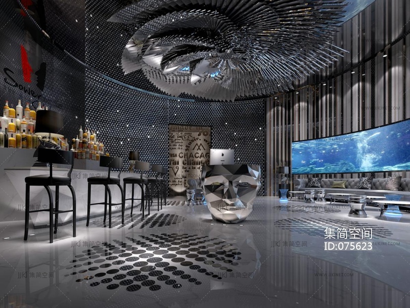 24现代后现代酒吧,ktv,大厅接待厅,人物人脸面具,酒吧 3d模型下载 [模型ID:75623]