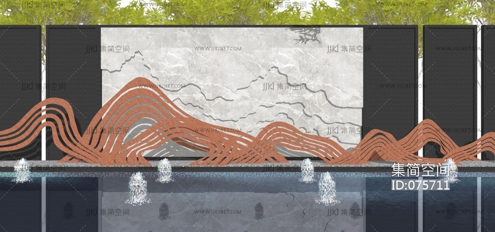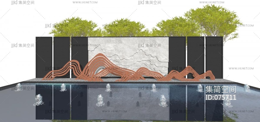 片岩水景 su草图模型下载 [模型ID:75711]