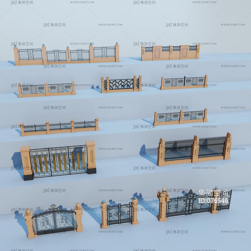 欧式铁艺围墙,院墙,栏杆,大门 3d模型下载 [模型ID:76546]