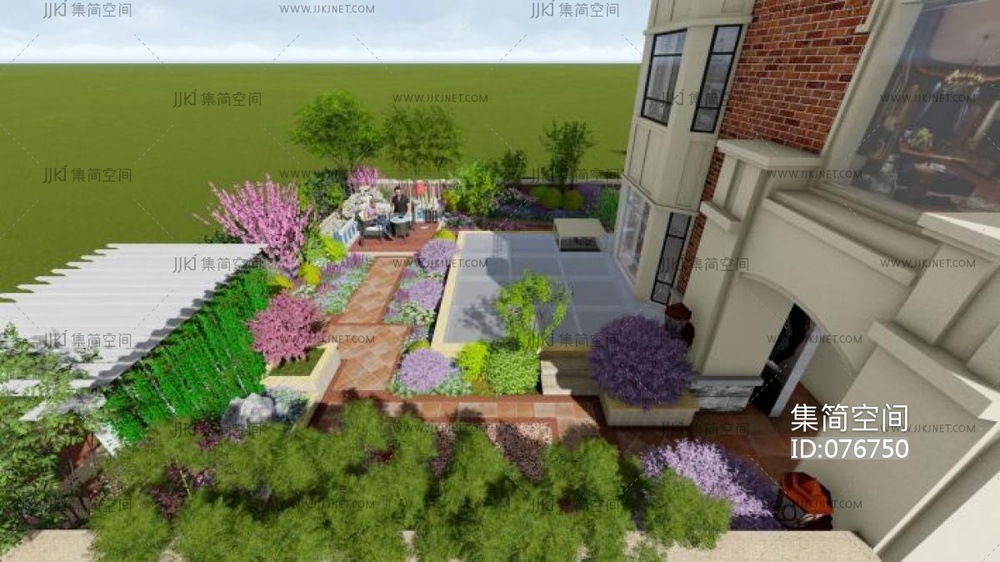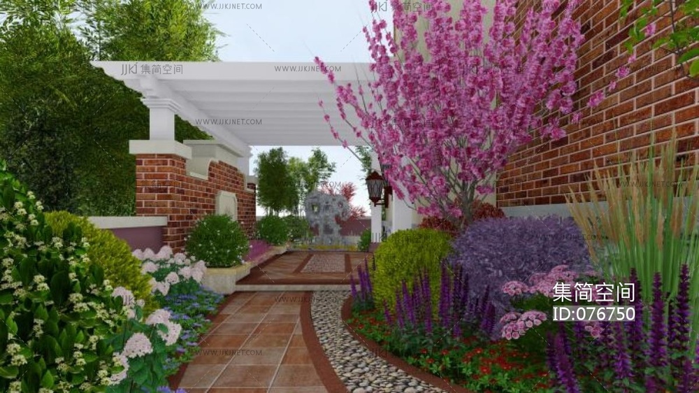 现代庭院景观小品_植物造景SU模型su草图模型下载