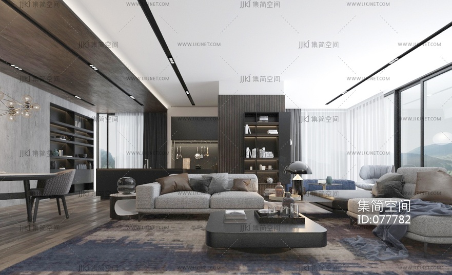 中古风客厅 沙发茶几组合 背景墙3d模型下载