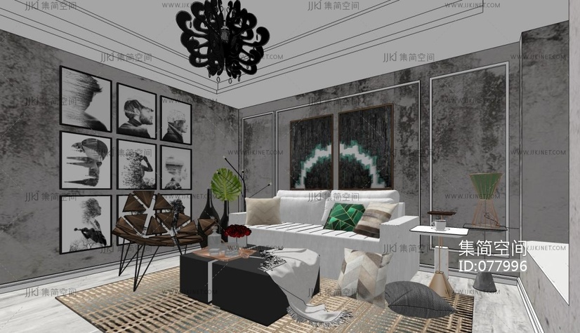 北欧现代客厅 su草图模型下载 [模型ID:77996]