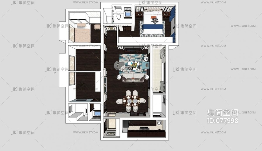 现代美式/客厅设计 su草图模型下载 [模型ID:77998]