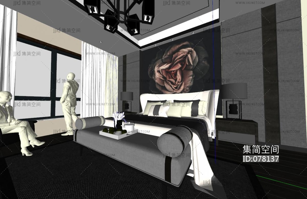 现代风格卧室 su草图模型下载 [模型ID:78137]