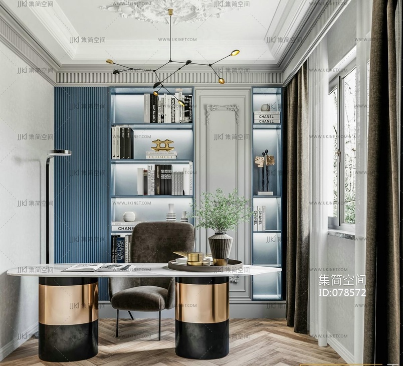 简欧式,法式现代轻奢书房,书桌椅 3d模型下载 [模型ID:78572]