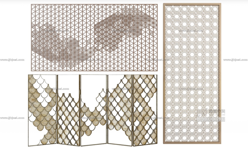 现代屏风隔断波浪造型背景墙3D模型3d模型下载