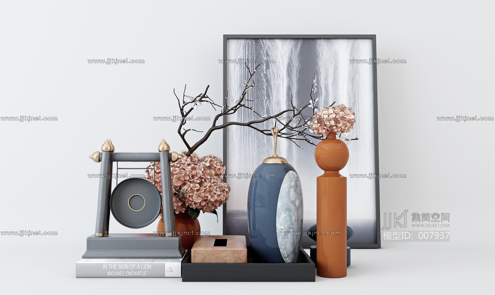 现代新中式雕塑摆件_饰品摆件组合3D模型3d模型下载