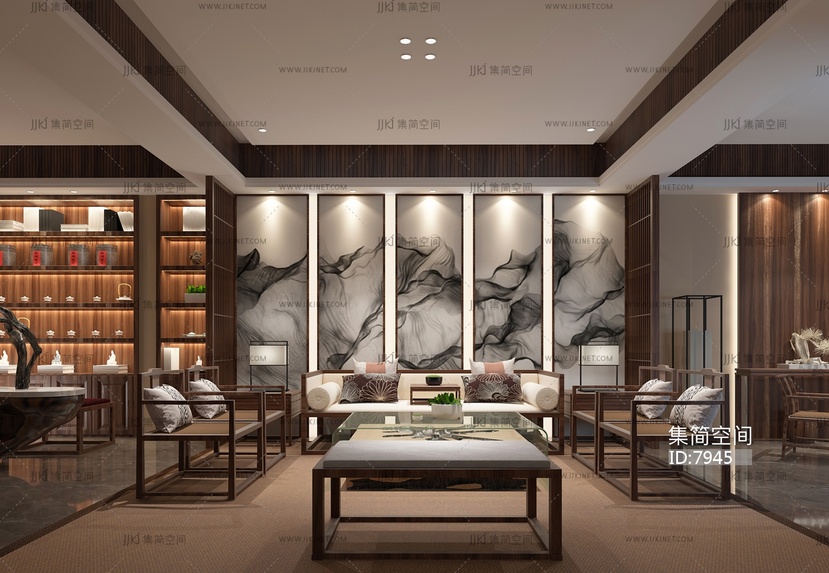 新中式茶室休闲区 3d模型下载 [模型ID:7945]