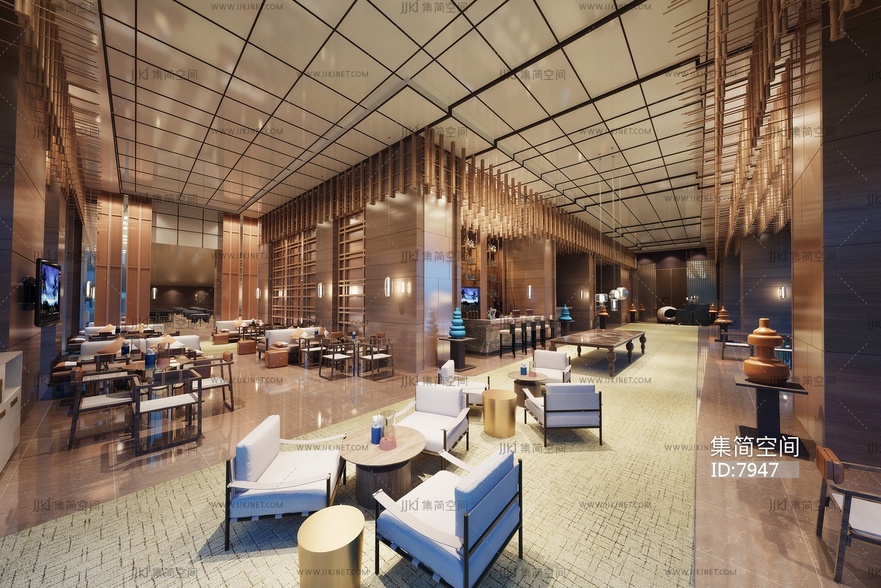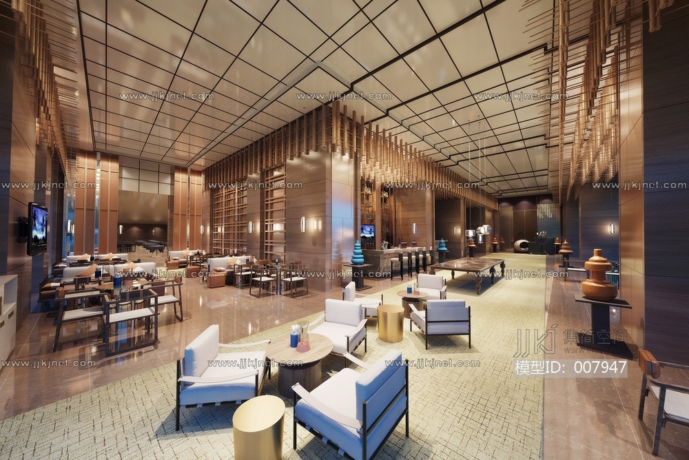 新中式酒店大堂吧 3d模型下载 [模型ID:7947]