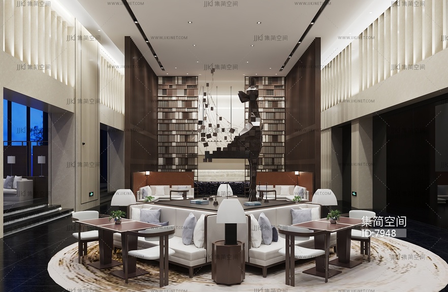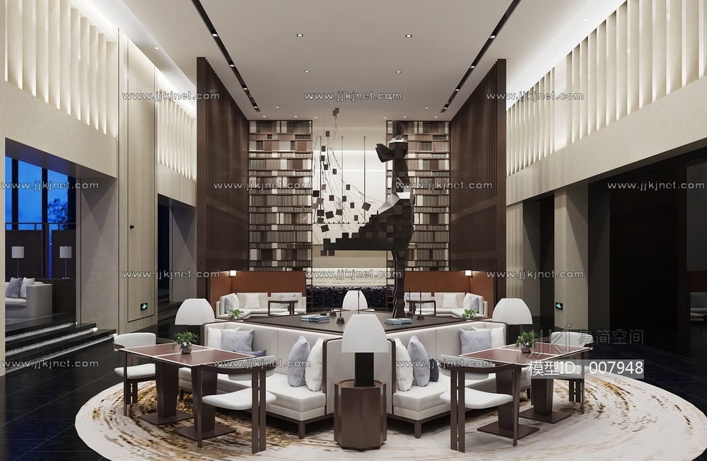 新中式售楼处休闲洽谈区 01 3d模型下载 [模型ID:7948]