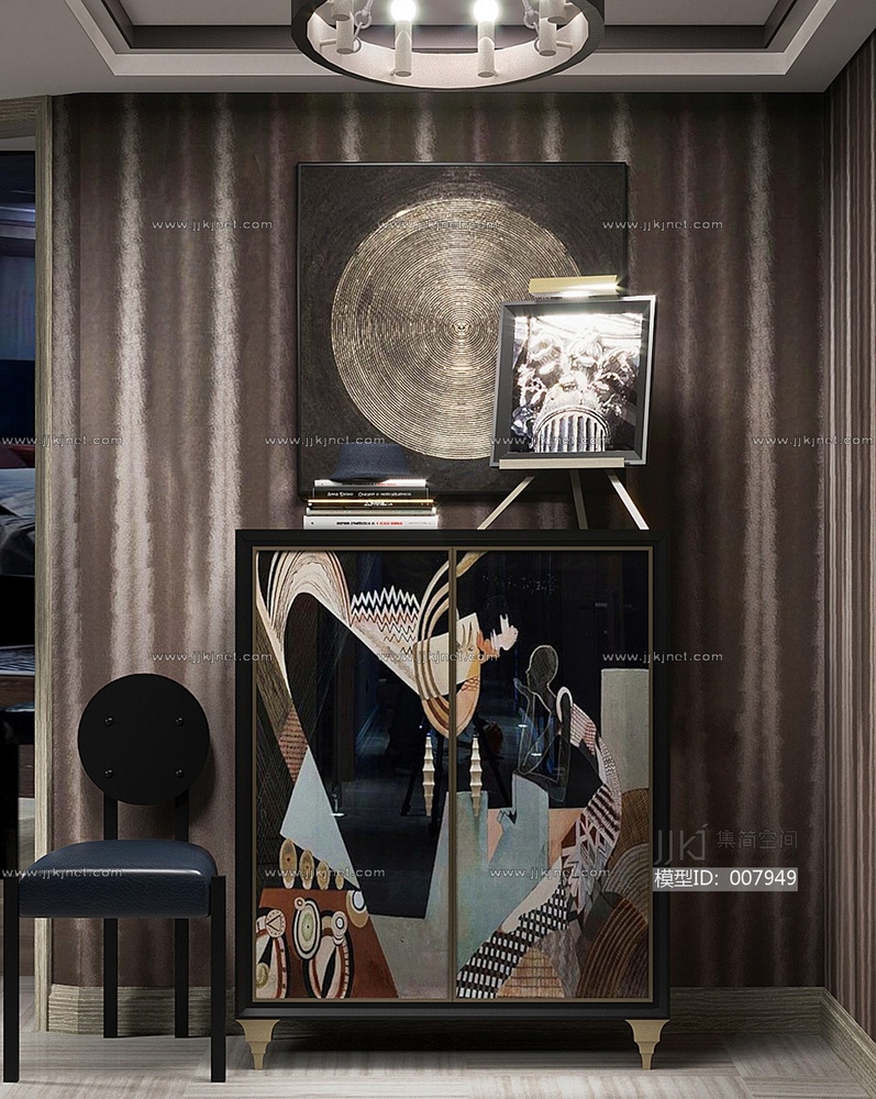 美式玄关柜摆台装饰画3D模型下载3d模型下载