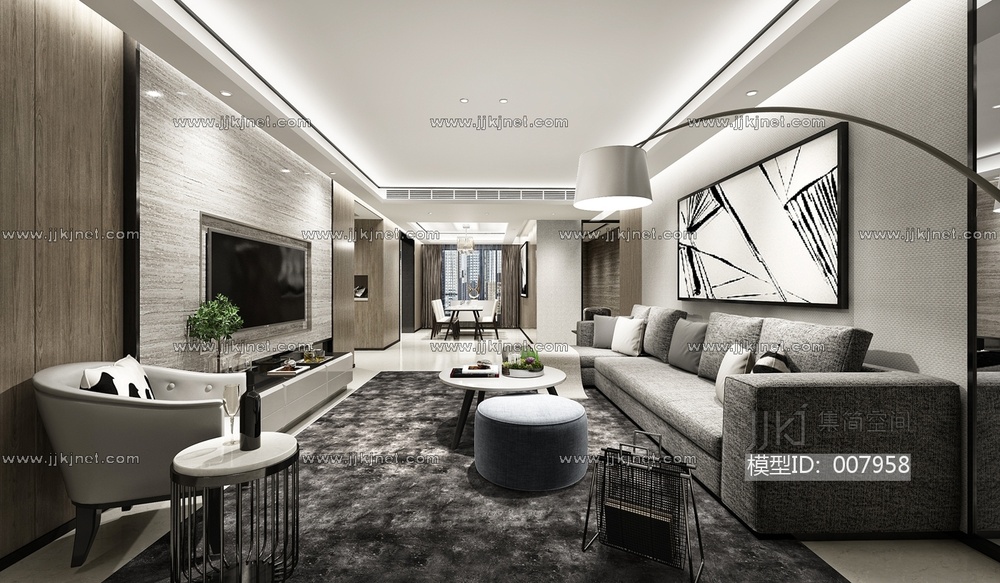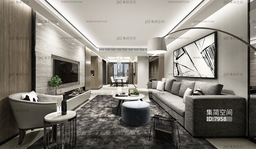08-1021现代客厅 3d模型下载 [模型ID:7958]
