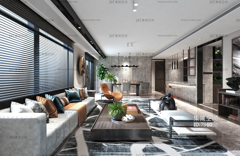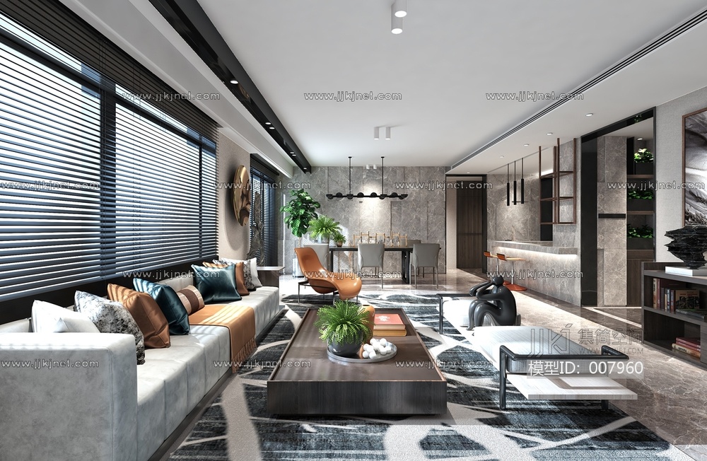 12-1021现代客厅 3d模型下载 [模型ID:7960]