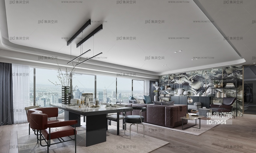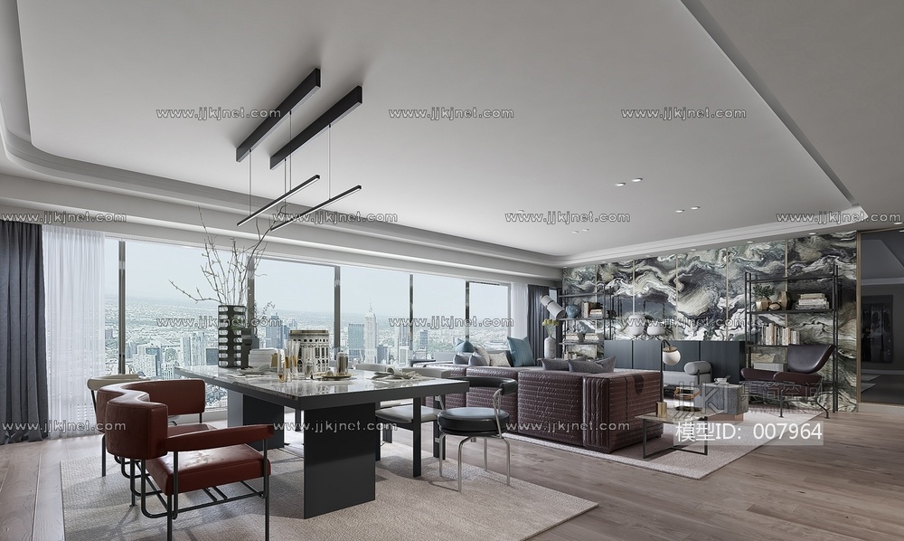 15-1021现代客厅餐厅 3d模型下载 [模型ID:7964]