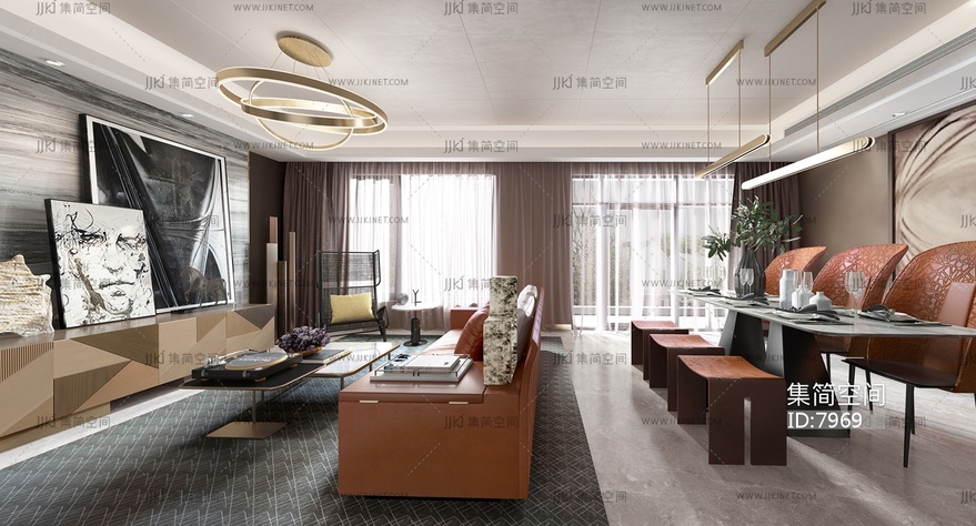 17-1021现代客厅 3d模型下载 [模型ID:7969]