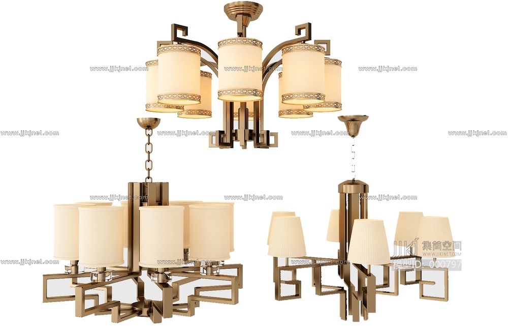 新中式铁艺吊灯,吸顶灯 3d模型下载 [模型ID:797]