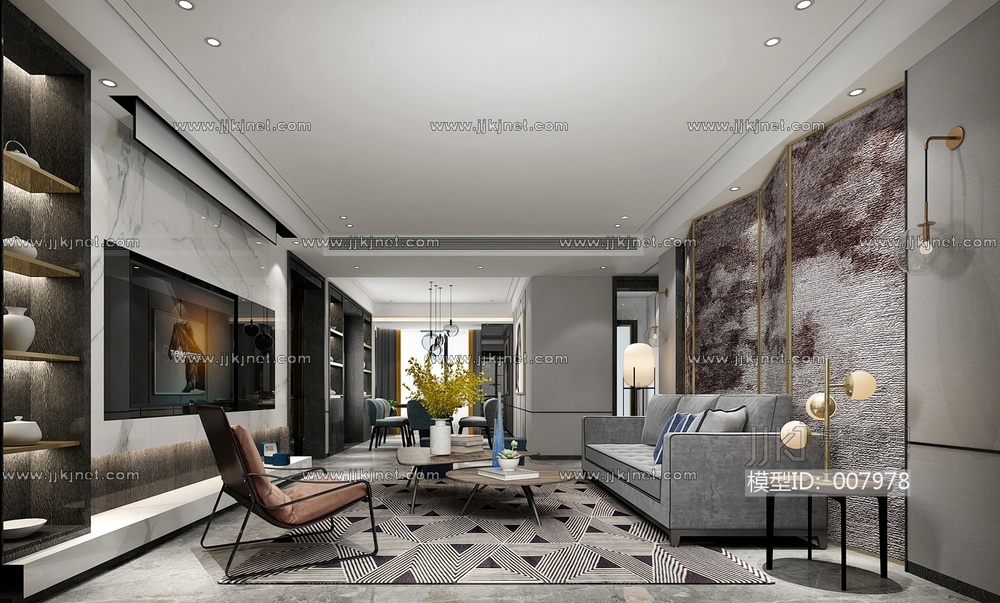 29-1021现代客厅 3d模型下载 [模型ID:7978]