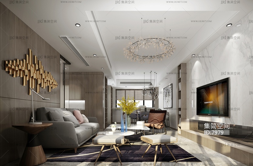30-1021现代客厅 3d模型下载 [模型ID:7979]