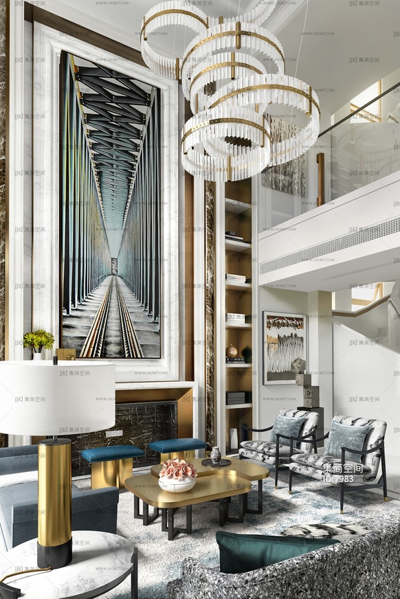 06-1021新中式客厅 3d模型下载 [模型ID:7983]