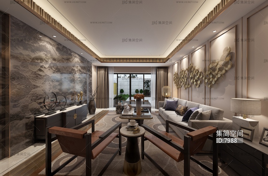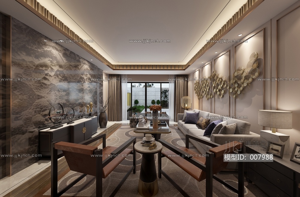 09-1021新中式客厅 3d模型下载 [模型ID:7988]