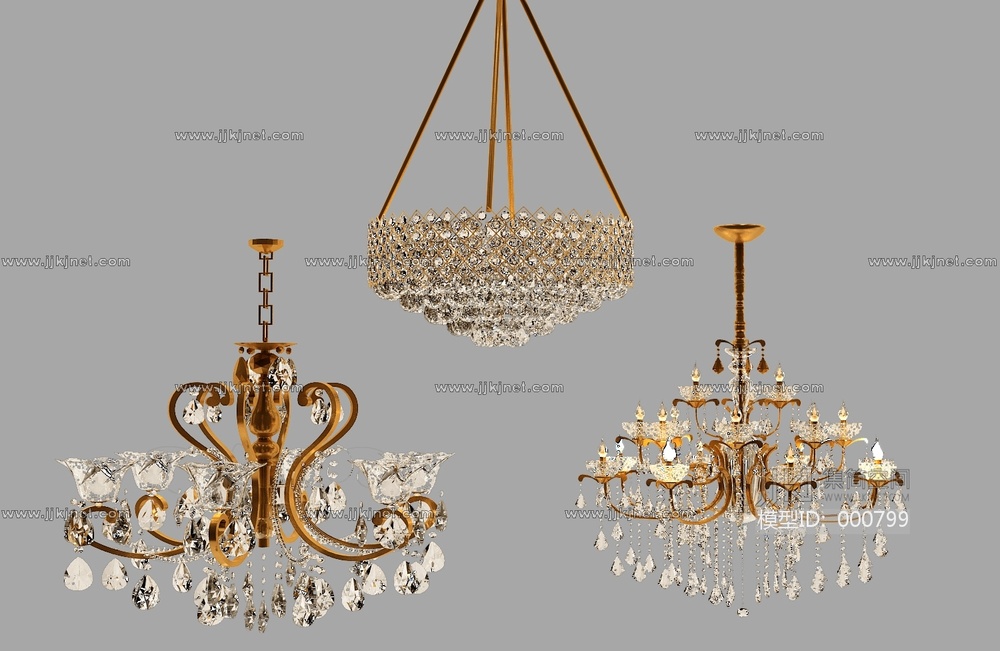 欧式法式美式水晶吊灯 3d模型下载 [模型ID:799]