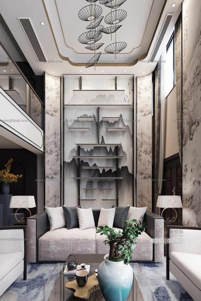 13-1021新中式客厅 3d模型下载 [模型ID:7991]