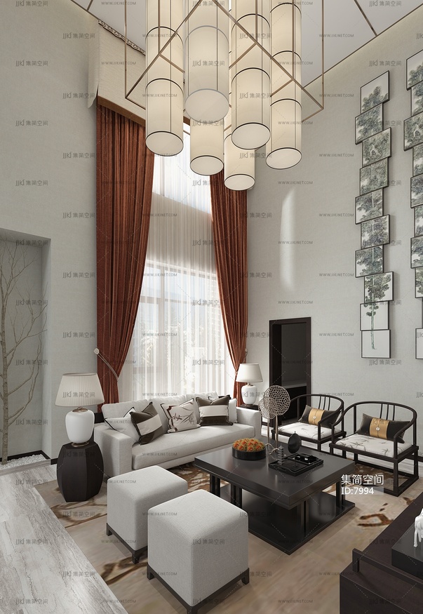 12-1021新中式客厅吊灯 3d模型下载 [模型ID:7994]