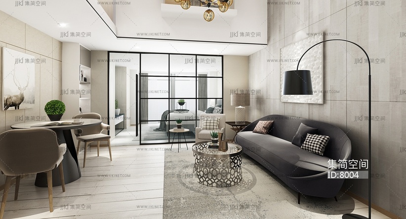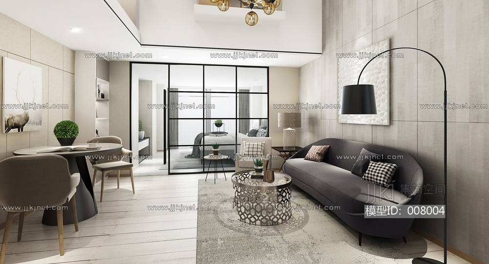 01-1018loft现代公寓客厅 3d模型下载 [模型ID:8004]