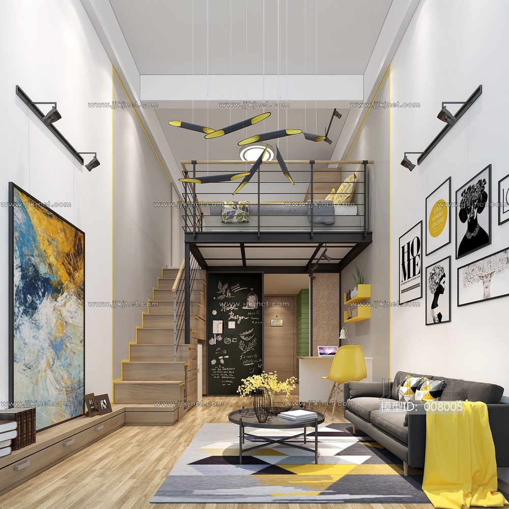 06-1018现代loft公寓客厅 3d模型下载 [模型ID:8005]