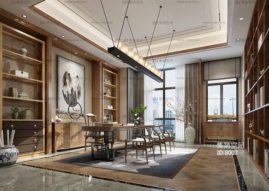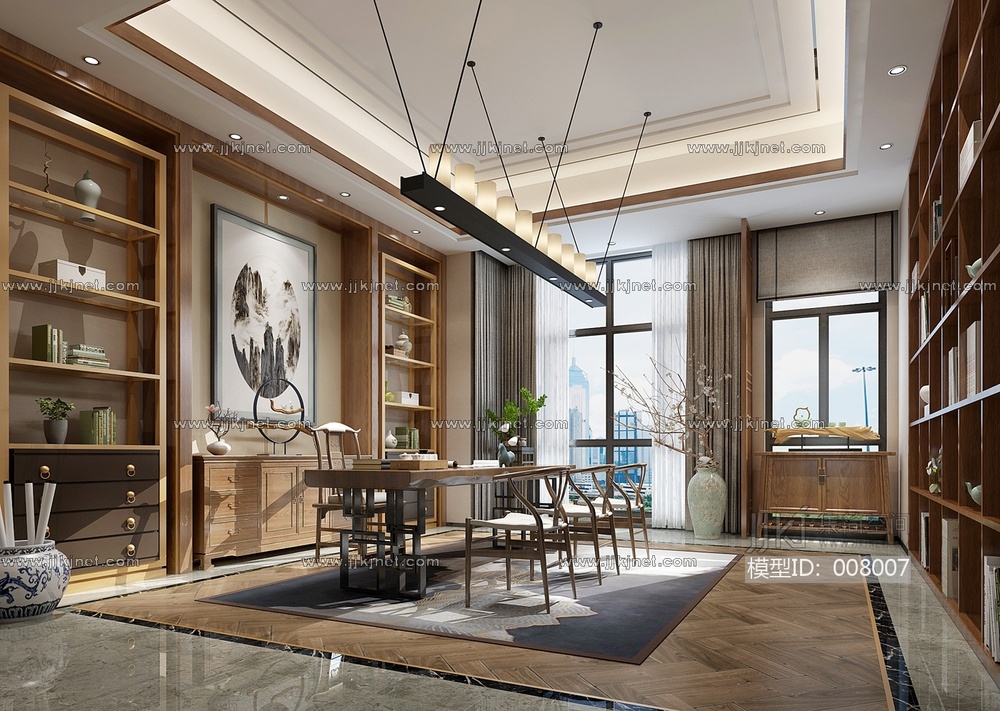 02-1021中式书房 3d模型下载 [模型ID:8007]