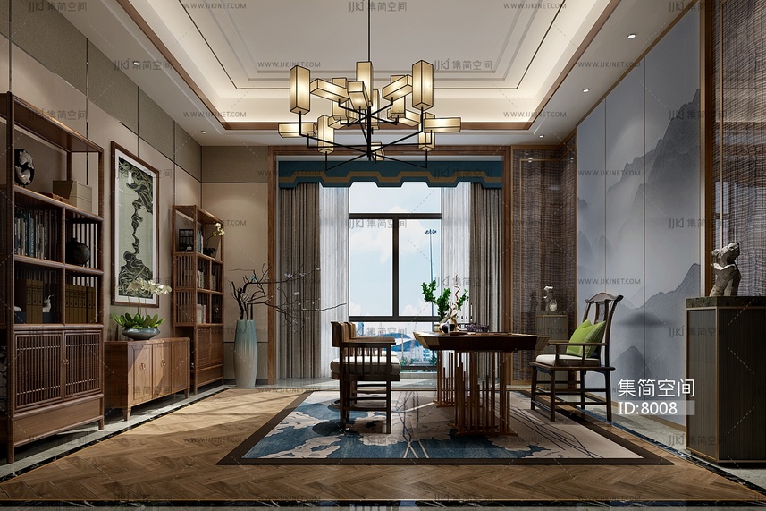 03-1021新中式书房 3d模型下载 [模型ID:8008]