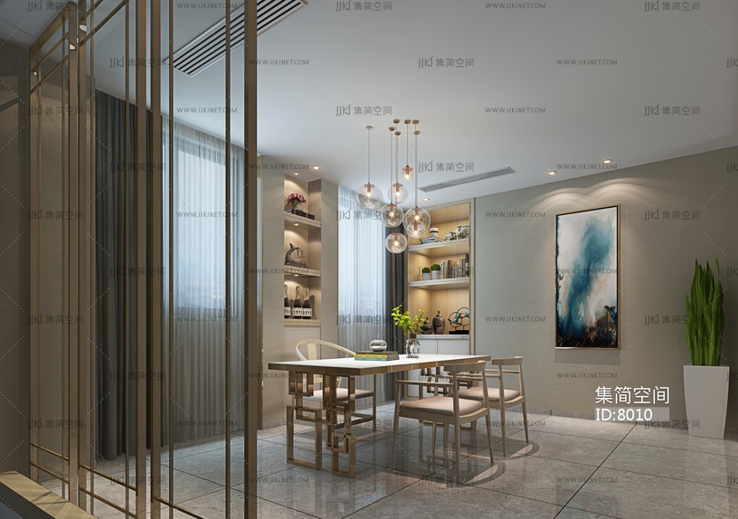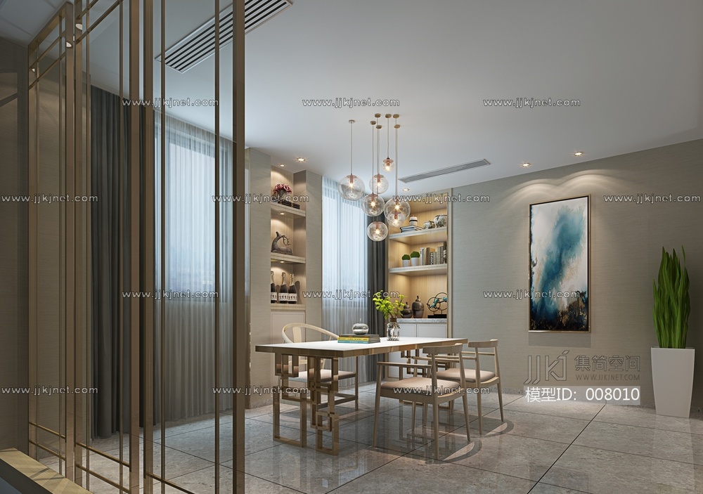 06-1021新中式书房 3d模型下载 [模型ID:8010]