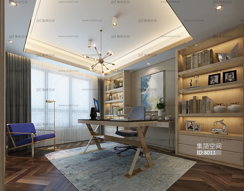 07-1021现代书房 3d模型下载 [模型ID:8011]