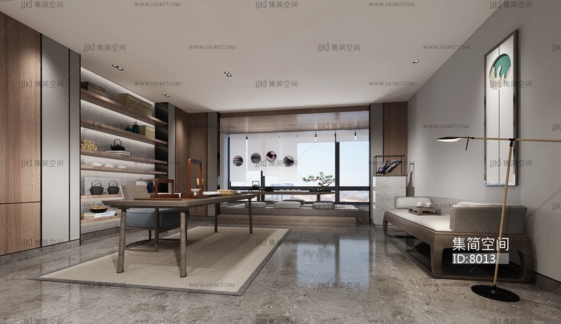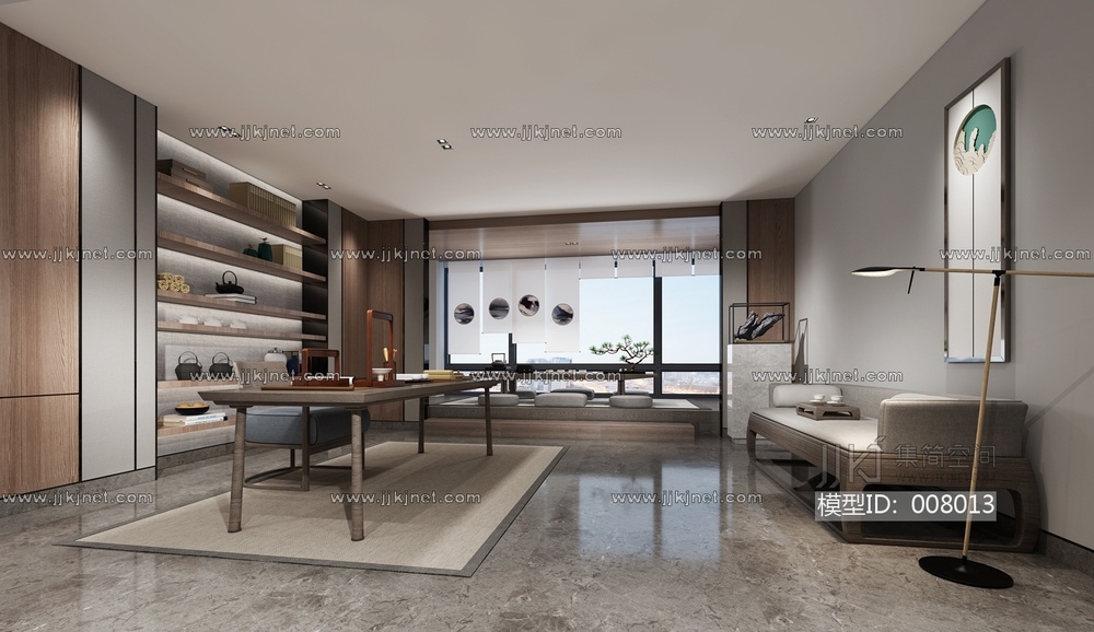 04-10-21新中式书房 3d模型下载 [模型ID:8013]