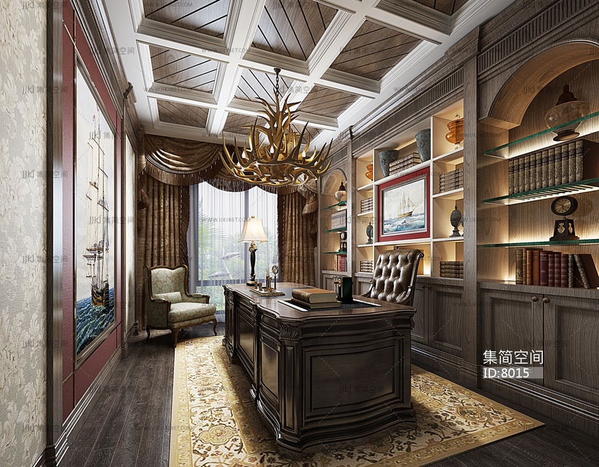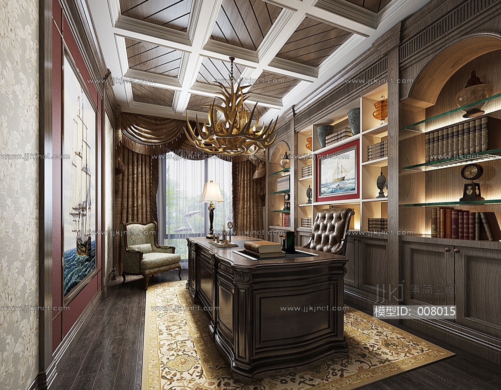 35-1021美式书房 3d模型下载 [模型ID:8015]