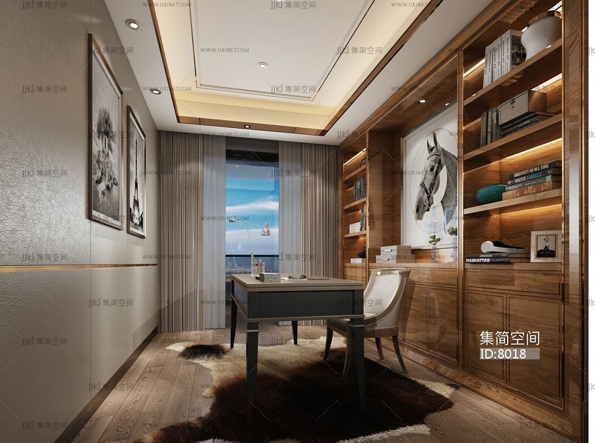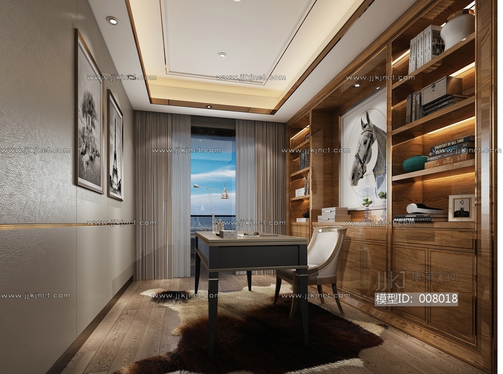 50-1021现代书房 3d模型下载 [模型ID:8018]