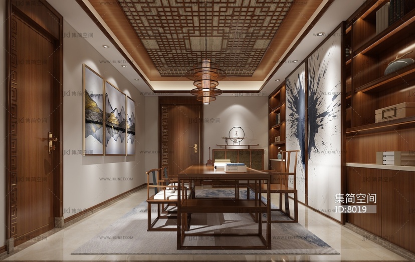 57-1021中式书房 3d模型下载 [模型ID:8019]