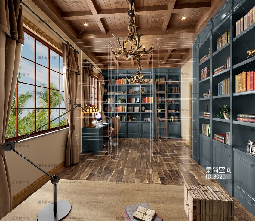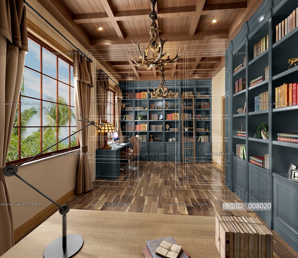 46-1021美式书房 3d模型下载 [模型ID:8020]
