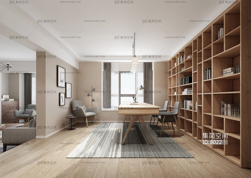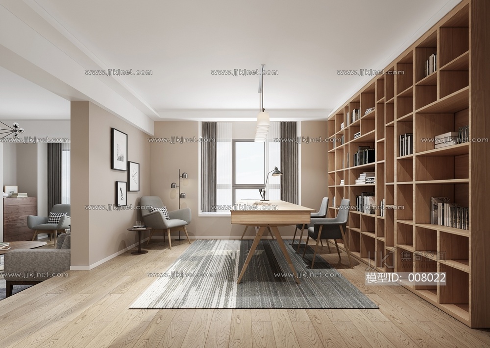58-1021现代书房 3d模型下载 [模型ID:8022]
