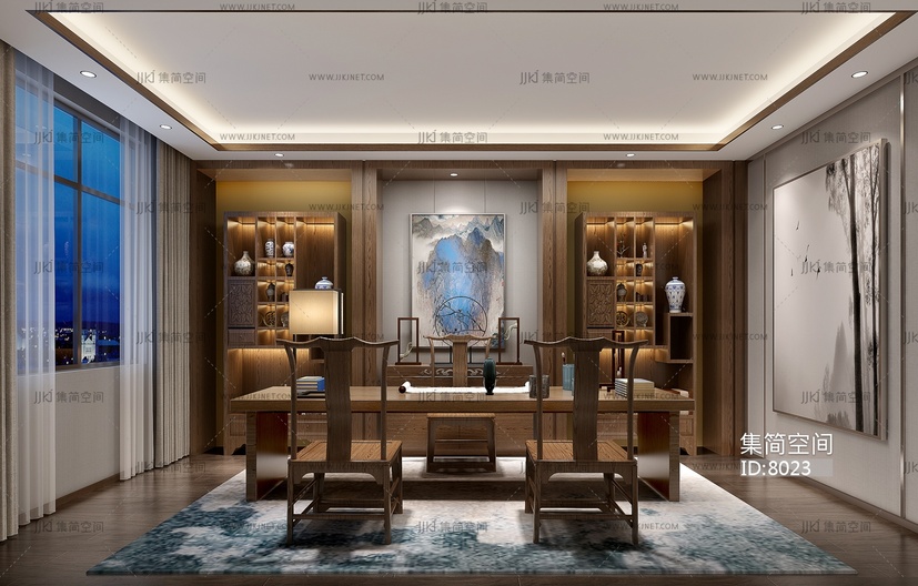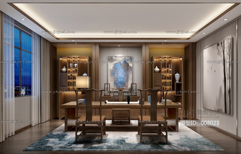 60-1021中式书房 3d模型下载 [模型ID:8023]