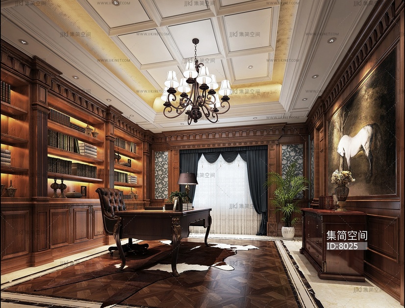62-1021美式书房 3d模型下载 [模型ID:8025]