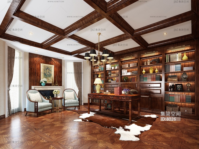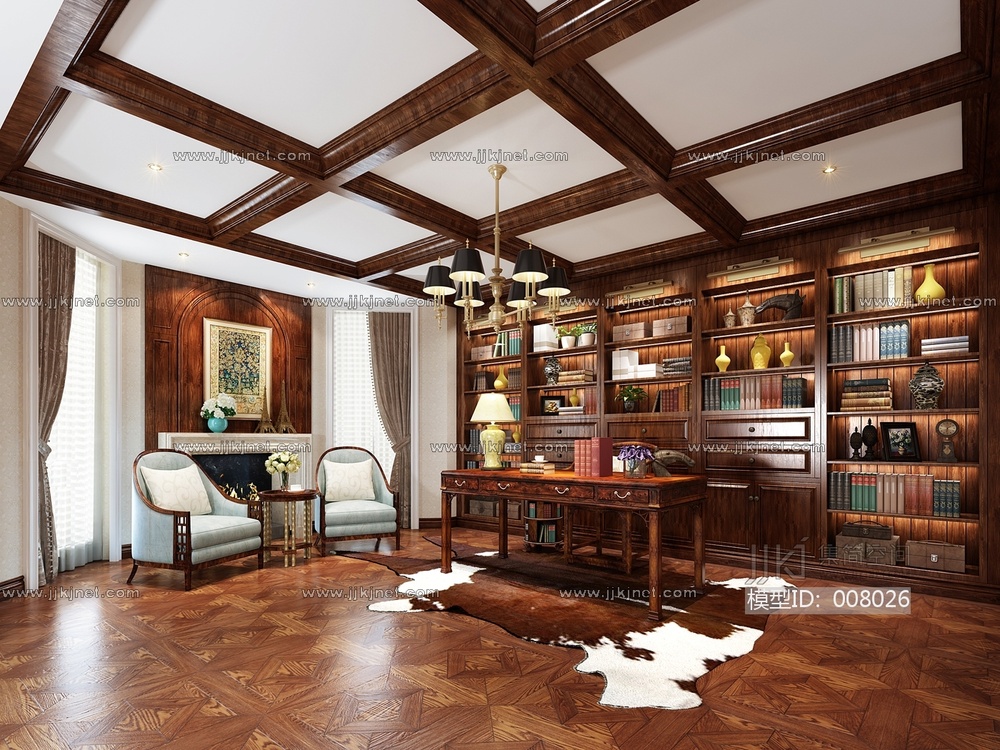 63-1021欧式书房 3d模型下载 [模型ID:8026]