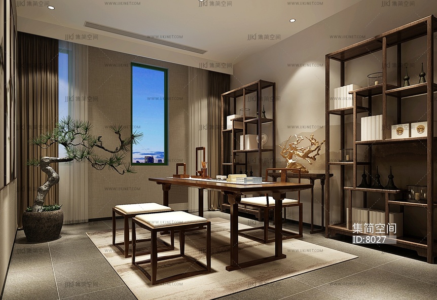 64-1021新中式书房 3d模型下载 [模型ID:8027]