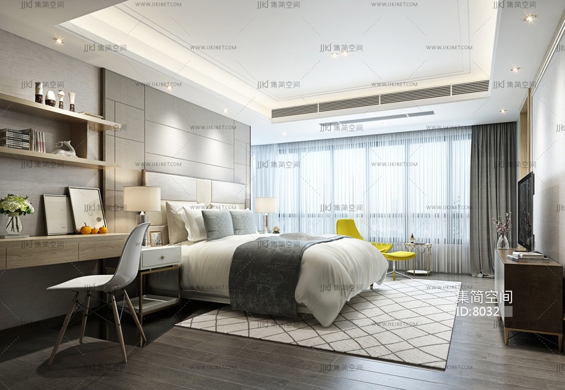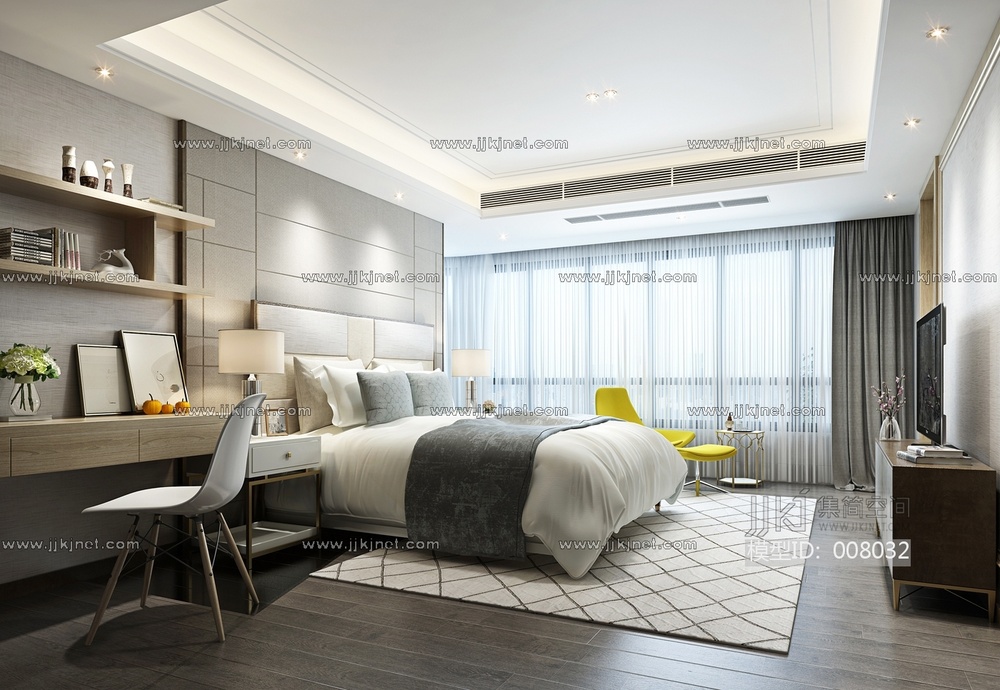 21-1021现代卧室 3d模型下载 [模型ID:8032]