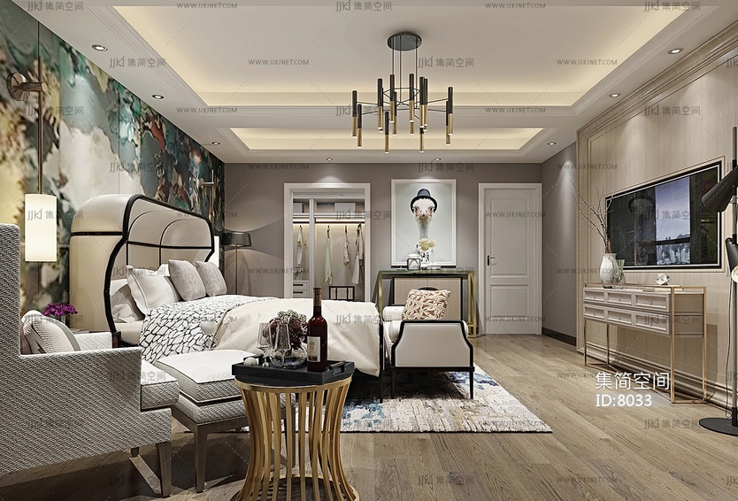 43-1021简欧卧室 3d模型下载 [模型ID:8033]