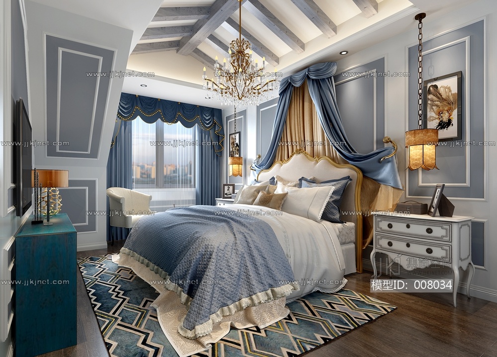 46-1021地中海卧室布蔓床 3d模型下载 [模型ID:8034]