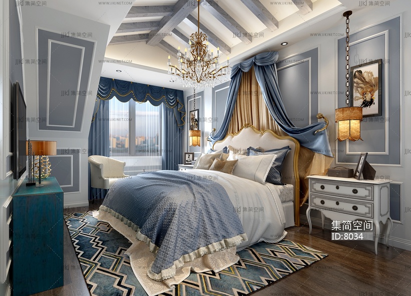 简欧卧室 3d模型3d模型下载